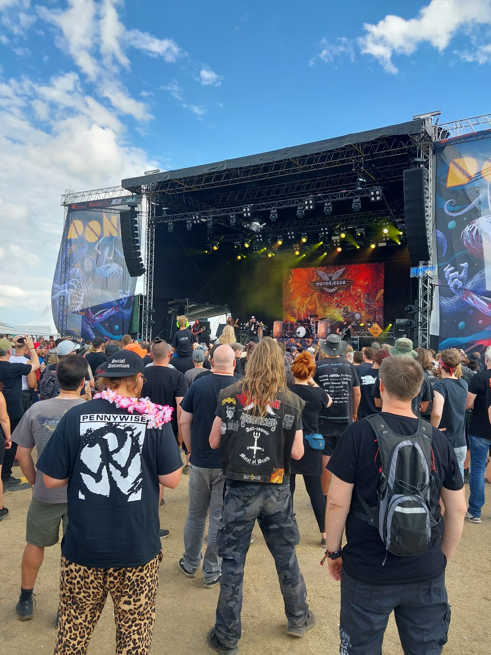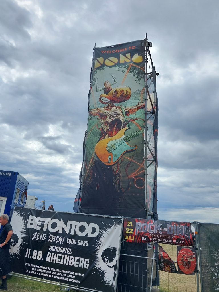It was time again for the “Call Of The Mountain”, this year’s slogan of DOA 2023. But after a dozen of Dong-participations we just were able to arrive for the third day due to sickness reasons. Anyway, the saturday offered a strong billing lead by the Scandinavian triple attack. After changing to an open stage as rearranging the whole set-up of the hill moving the stage to its other side there weren’t that many organizational changes in 2023 than they had happened for last year’s comeback after the pandemic break.
