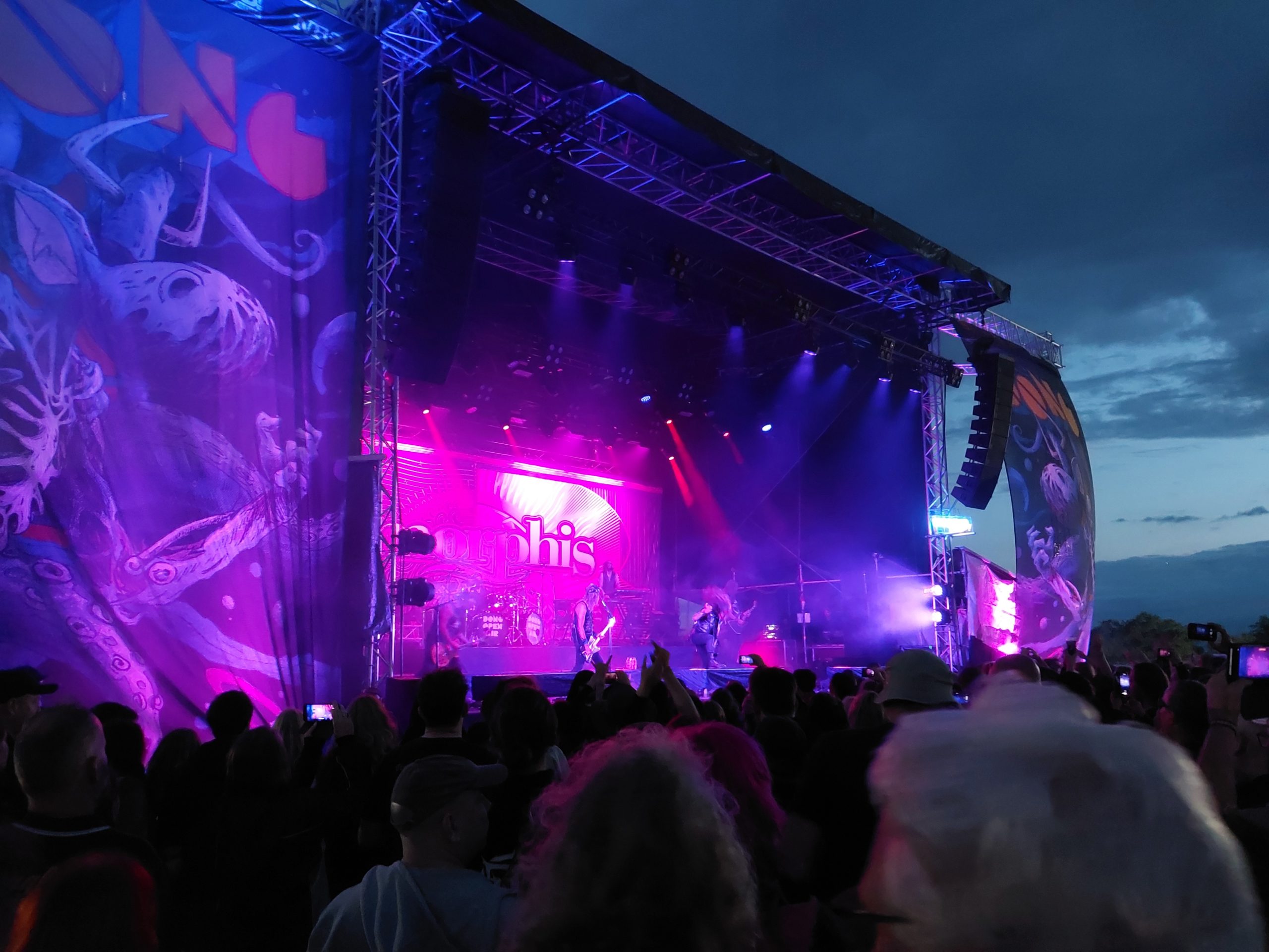 Amorphis After appearing in the smaller long tent in 2009 and in the larger circus tent in 2016 the melodic as melancholic Death Metal sound from the land from the thousand lakes returned to the Dong hill onto its open stage. 14 years ago they were the huge super stars of the billing, this time they still headlined as a part of an even much better billing. And again Helsinki’s finest performed one of the highlight shows of this year’s DOA. After an intro with red flashing lights those ones turned constantly blue to welcome the Finns starting with “Northwards”. By “The Moon”, “Into Hiding”, “Black Winter Day” and “Silver Bride” Tomi Joutsen (with a regular microphone instead of his classic one) & Co got complete support by the whole audience. The vibe between band as crowd worked well, so the Finns finished a jubilated performance by “My Kantele”, “House Of Sleep” and “The Bee”.