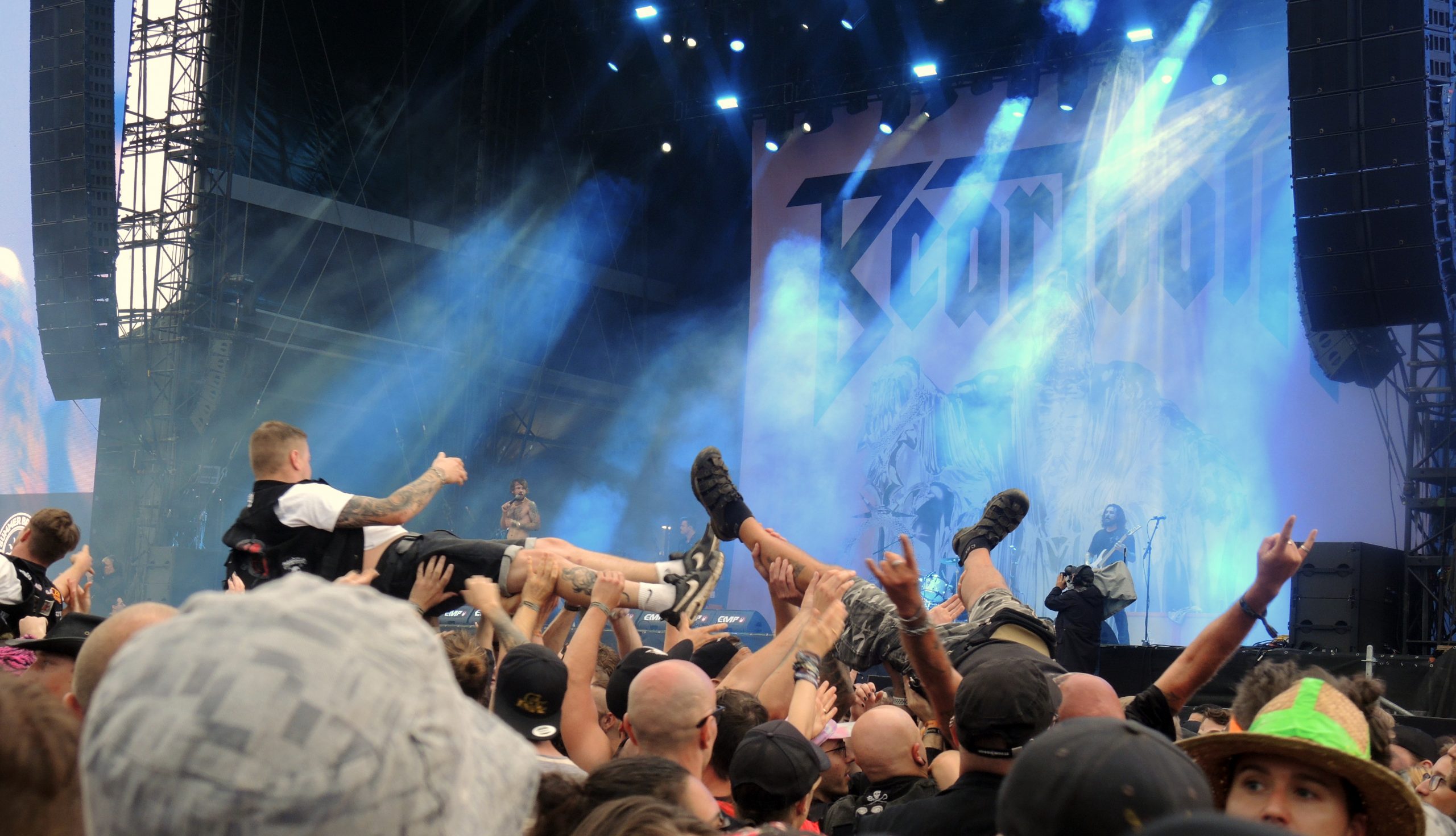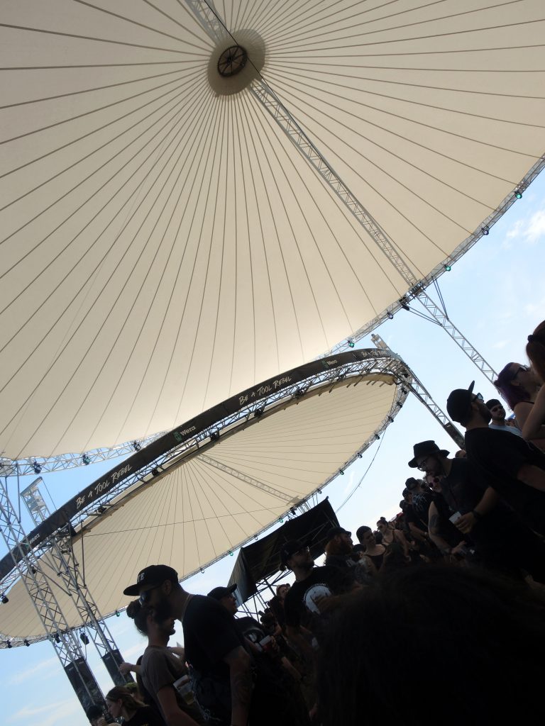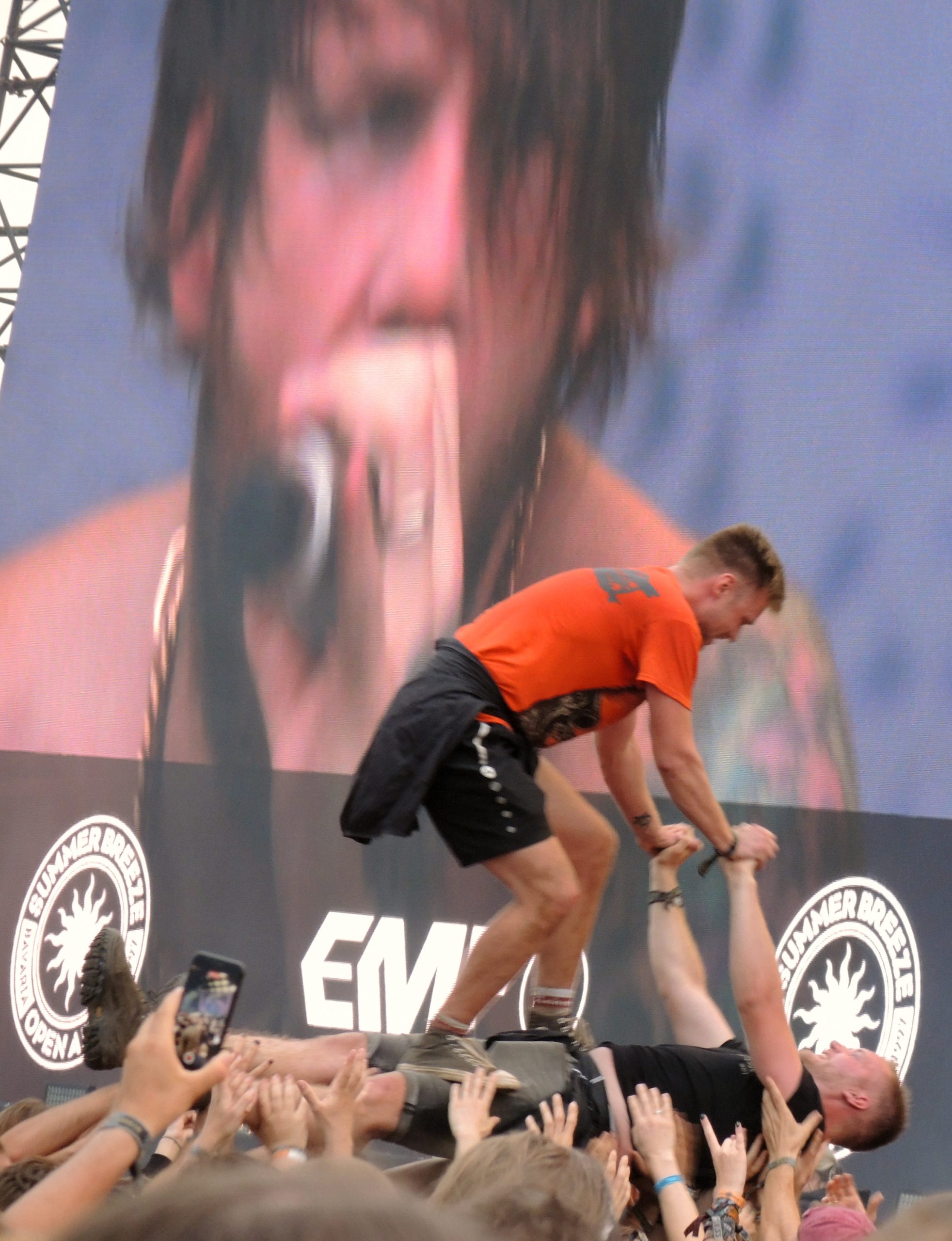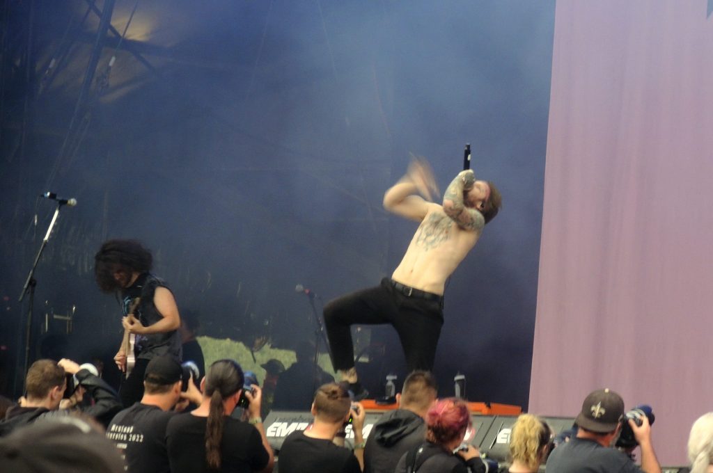 Beartooth A few years ago the fivepiece from Columbus performed on the smallest SB-stage, this year they were the band before the headliner. Speaks for itself, but they showed why derserving this position. Fronter Caleb Shomo animated the crowd each break and inspired numerous crowdsurfers, headbangers as moshpits. And songs like “The Lines”, “Disease”, “Hated”, “In Between” as “The Past Is Dead” were pure invitations nobody on the infield could resist. Besides a best of program the quintet introduced by “Sunshine”, “Might Love Myself” and “Riptide” three previously unreleased songs from the forthcoming album coming in autumn. Even while those unknown compositions lots of hands were in the air. So in the end Caleb Shomo did some crowdsurfing with his guitar during the last tones of the show and a wonderful sundown. What a picture while getting applauded and jubilated a lot.