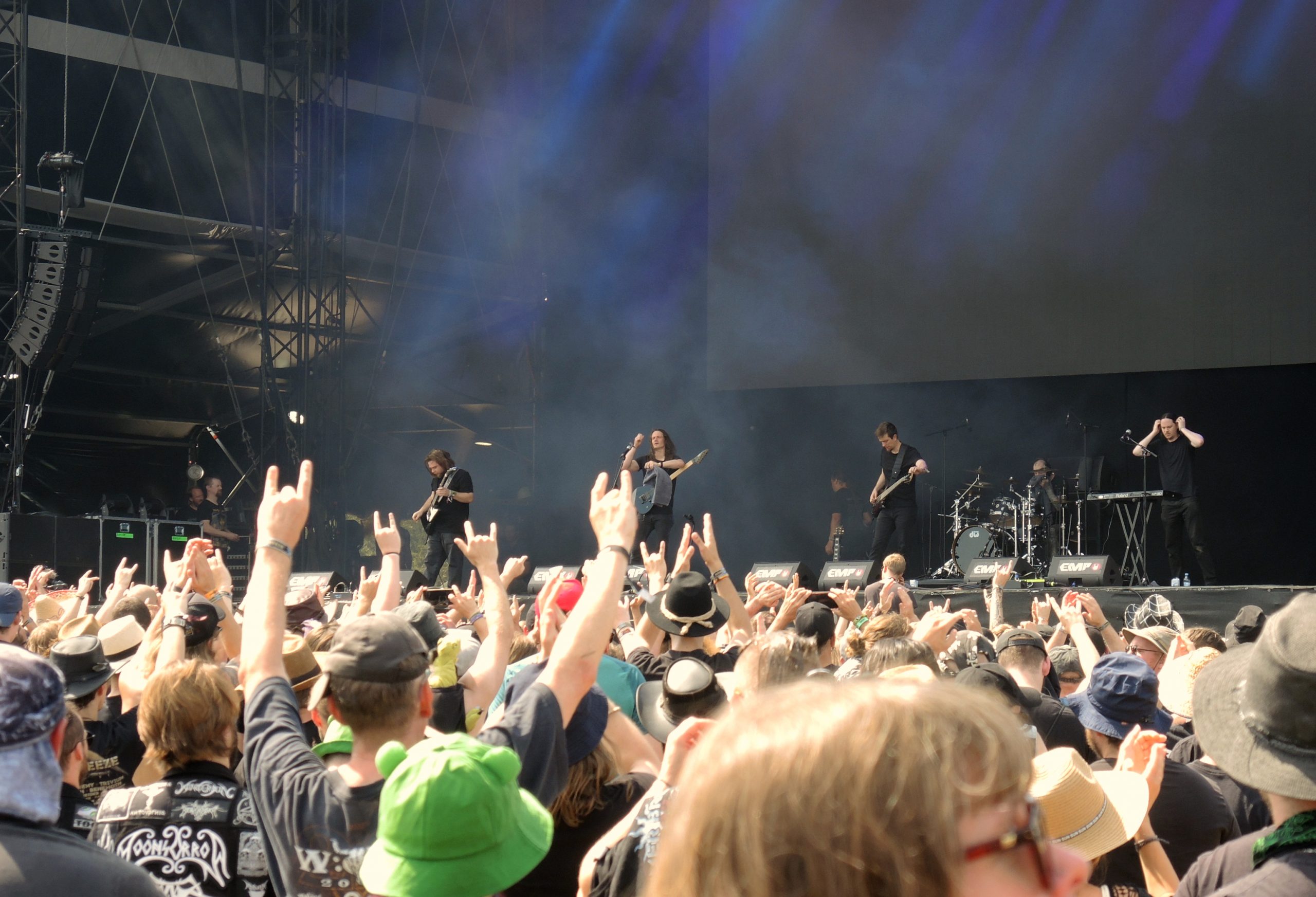 Hammerfall The Main Stage welcomed the next band from Gothenburg, but instead of Melodic Death Metal the sound turned to Melodic Metal without any Death. Since 1997 Hammerfall have evolved to an icon in this subgenre, so many spectators had stayed on the infield for them. But they couldn’t hold the energy level of their “neighbors”. The show as announcements of singer Joacim Cans looked as sounded a bit too uninspired. The debut classic “The Metal Age”, “Blood Bound”, “Renegade” and the pyro-flamed “Let The Hammer Fall” got the most jubilation by the crowd wich also celebrated the encores “Hammer High” and the band-hymn “Hearts On Fire”.