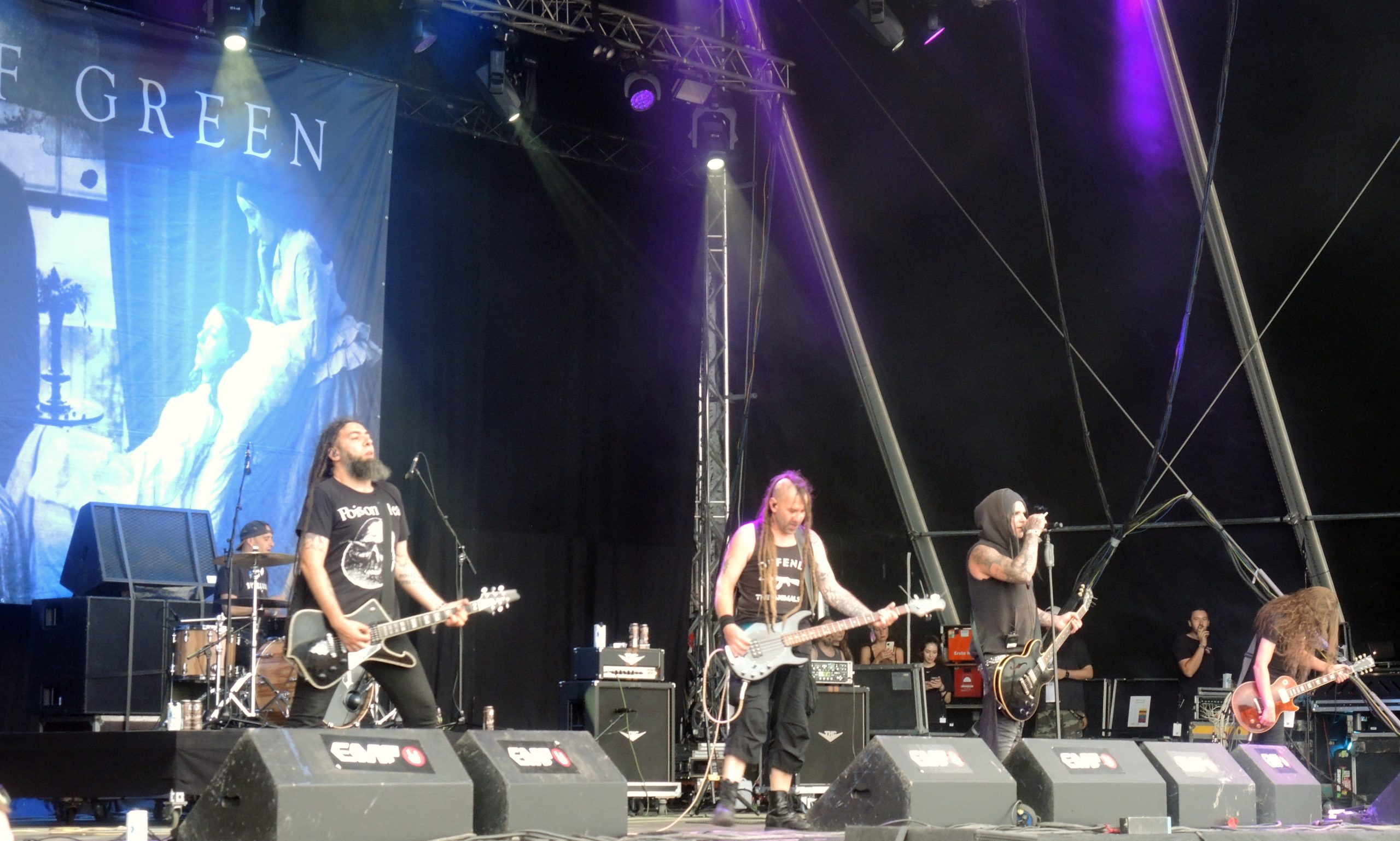 End Of Green The Dark Rockers surely are the band with the most performances at Summer Breeze. So they returned for another home game by “Pain Hates Me”, “Dead City Lights” and “Demons” enthusing the crowd. The constantly smoking frontman Michael Huber aka. Michelle Darkness entertained by his announcements spoken with much local slang and the band played a tight rocking set culminating in the hits “Killhoney” and “Goodnight Insomnia”. After this the fivepiece finished by their new unreleased songs “Ashes & Gold” and “Wasted Time” which was unusual, but got much applause as well.
